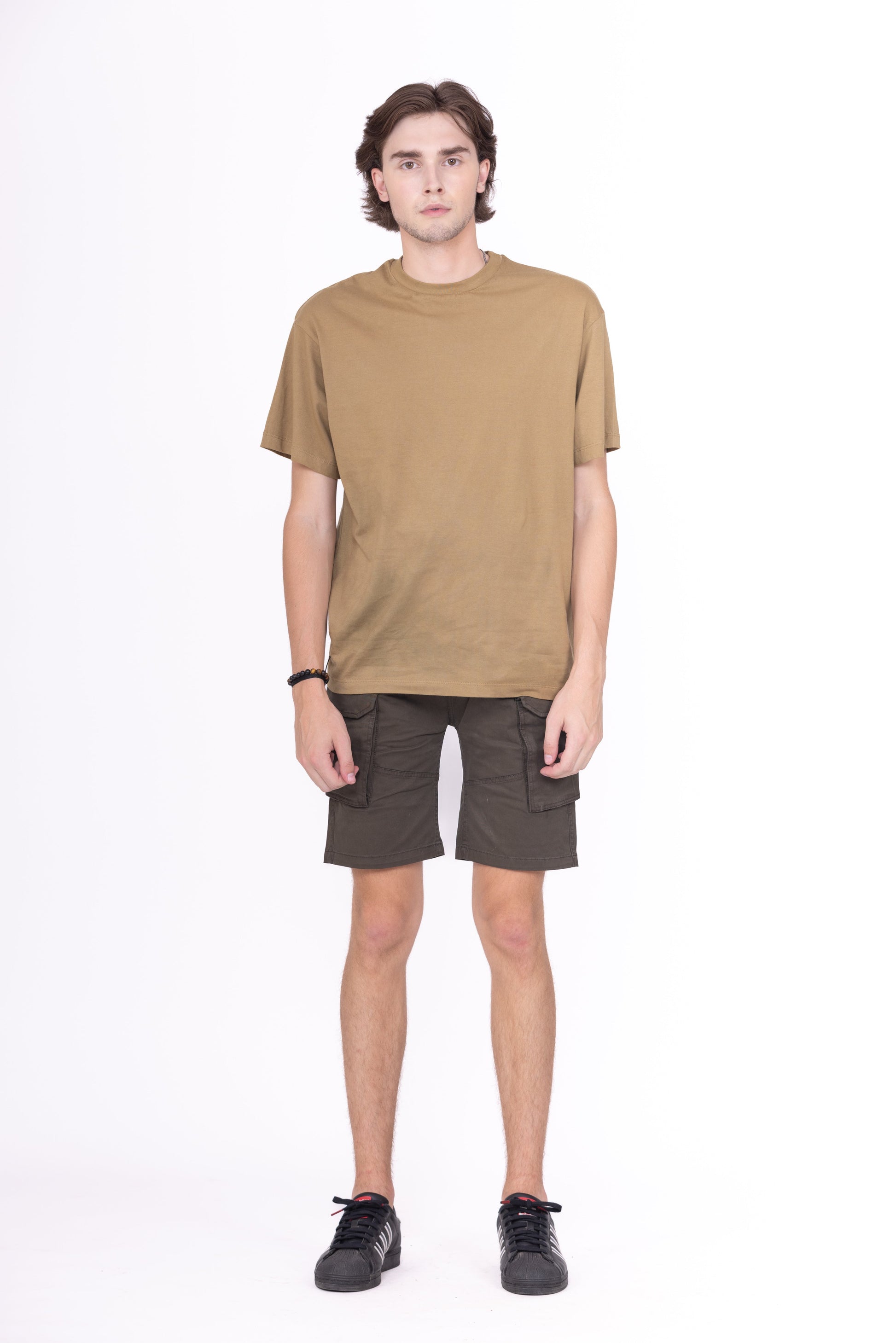 Slim fit half Pants . Front pockets and rear patch pockets. Patch pockets with flaps on the legs. Front zip fly and button fastening.