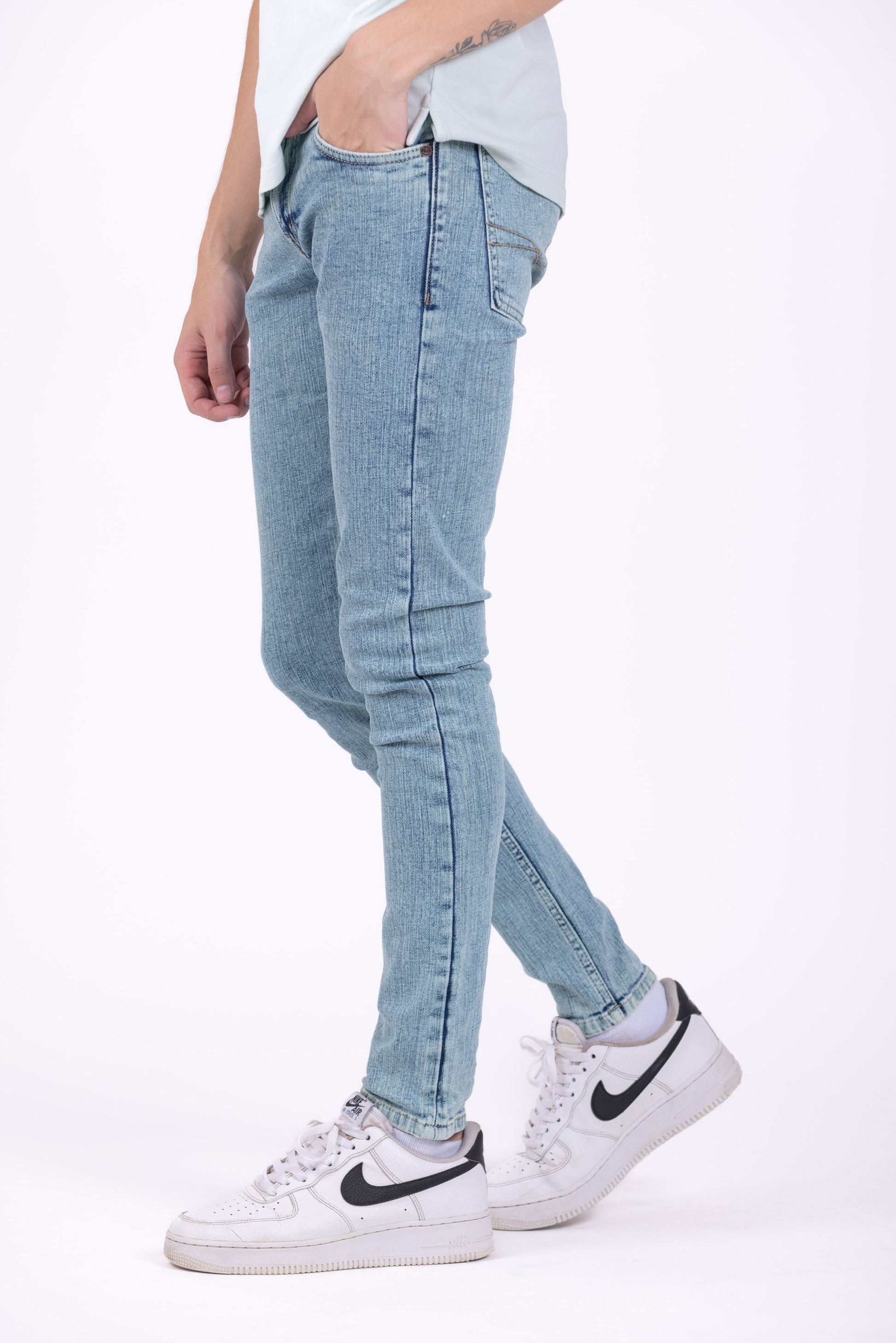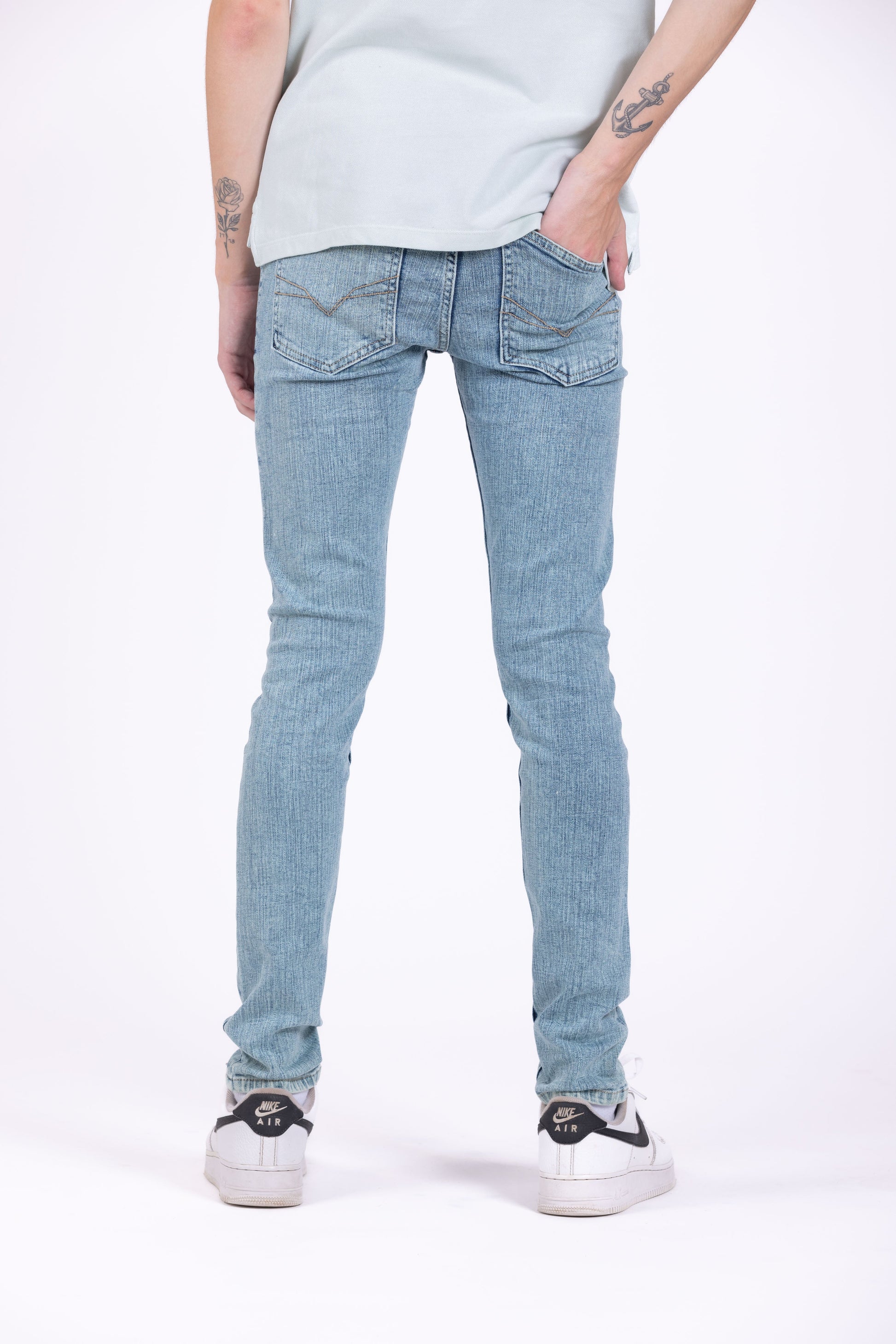 Skinny fit jeans. Five pockets. Faded effect. Front zip fly and button fastening