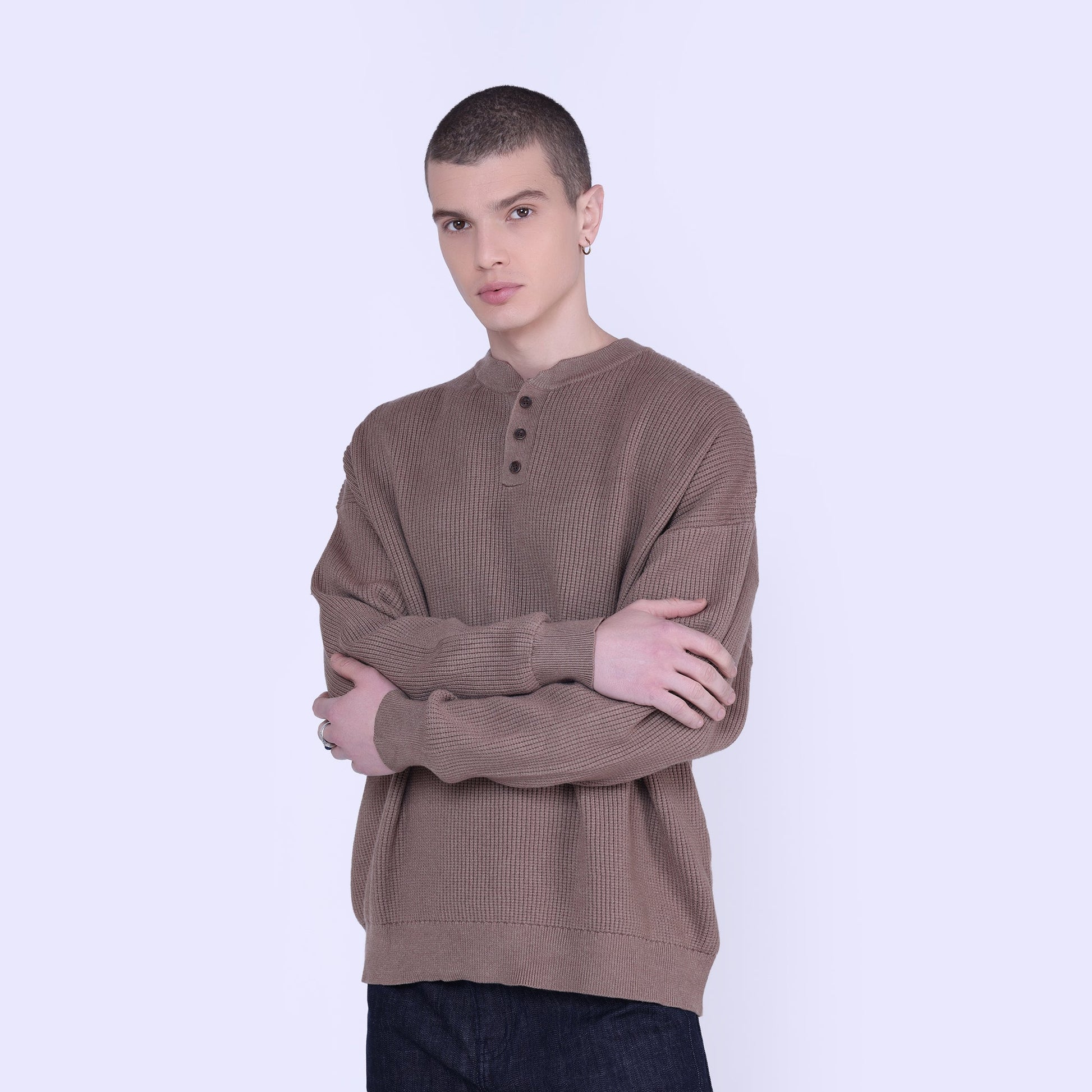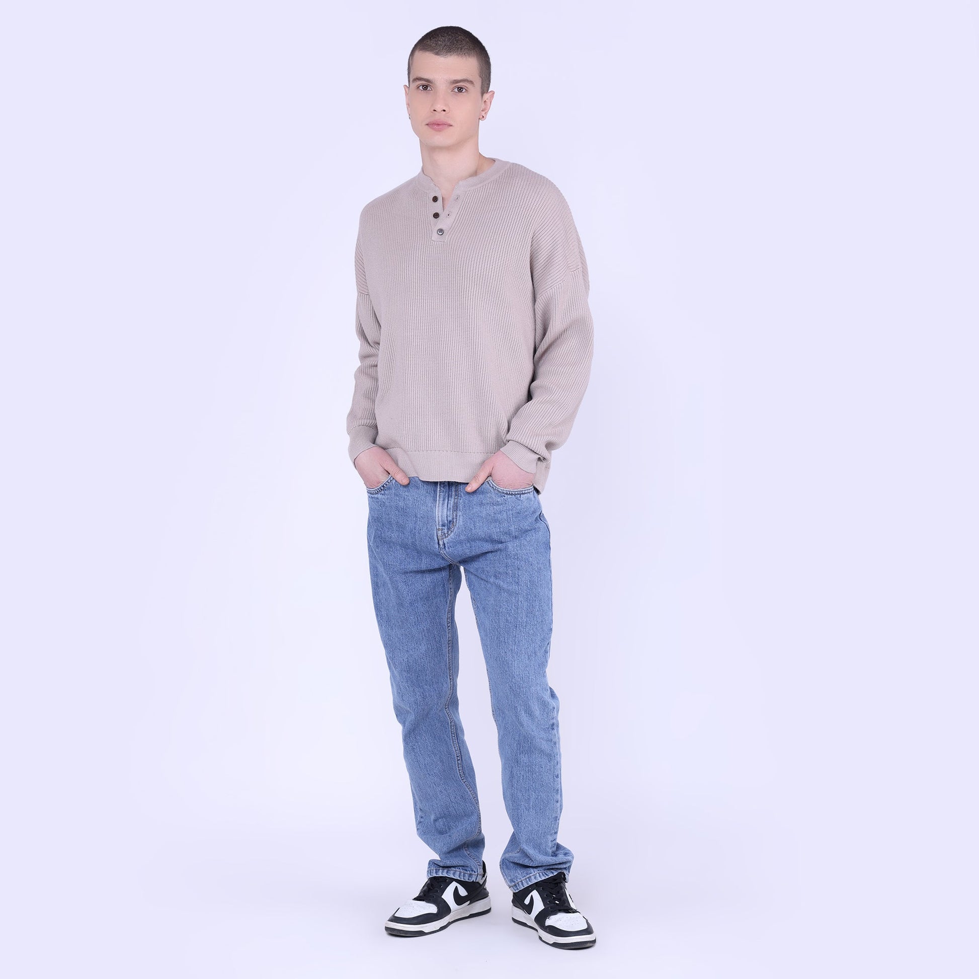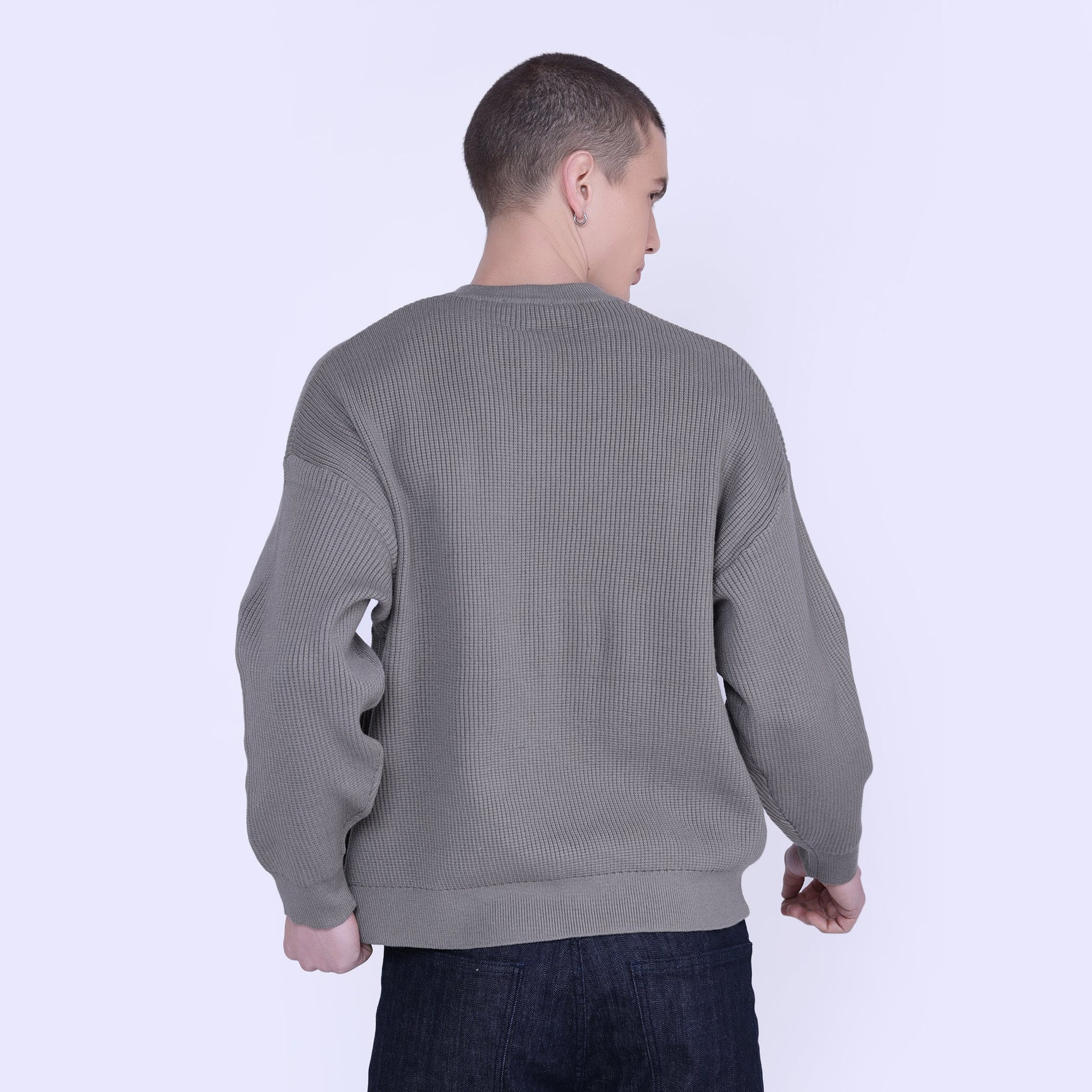 Sweater made of spun cotton fabric. Round neck and long sleeves. Ribbed trims.